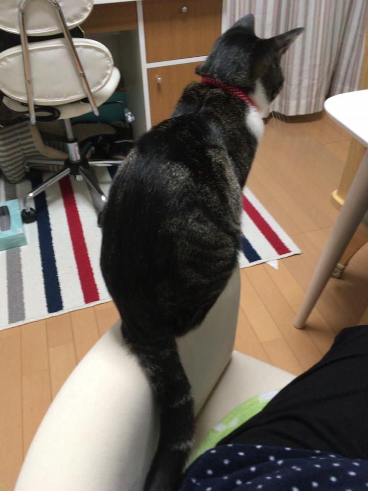 最近は主婦の椅子のここから飛ぶのがどっちもマイブーム。新しい遊びを無尽蔵に開発していく天才、子どもとねこ。