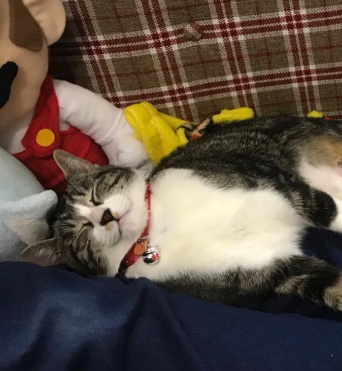 オットの人にそっとどかされる1秒前。そこは枕じゃないんだよーー(*´д`:)ダメだよーw