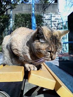 新宿区の小さな公園で出会った猫。太陽の光を受けて気持ちよさそうにしてたから、近づくと下を向かれてしまっちゃった。これこれ。