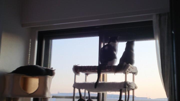 モモが窓づたいにエアコンの上に乗ったけど降りれなくなったので蛍光灯を見て飛び移ろうとしていたらしい(笑)