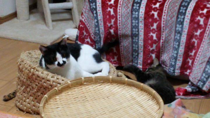 ふぅとモモはすぐに入りましたが、ちょびは覗いて、頭だけ入っていました( ̄▽ ̄;)