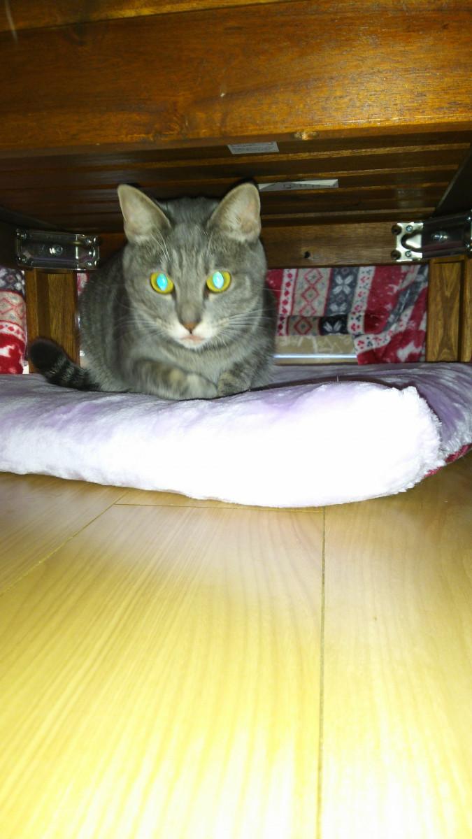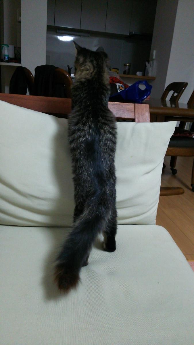 スマホを向けたら逃げたので私はソファーで大人しくしていました(笑)