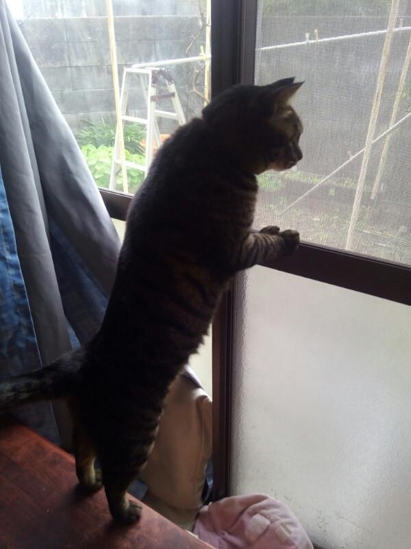 がんばれ息子。娘たちはとっとと暖かい猫部屋で寝てました。