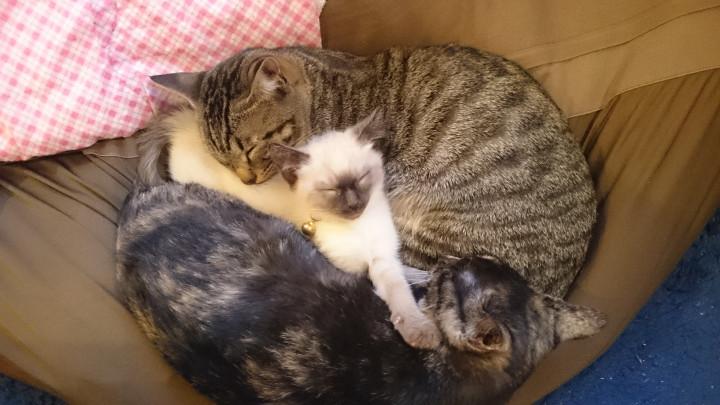 最初は去年ハチワレ猫を保護したことから猫を飼いはじめました。 このサイトでゎキジトラの姉妹をお譲りいただきました! あとは殺処分すると言ってた人がいてミケを引き取り哺乳瓶から育てて今はやんちゃすぎ...