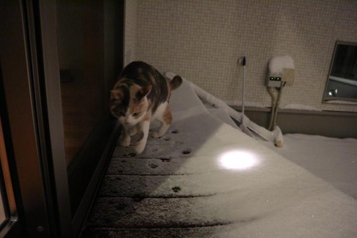 雪の上に乗れると思ったのに、スボッと埋まり鳴きました。