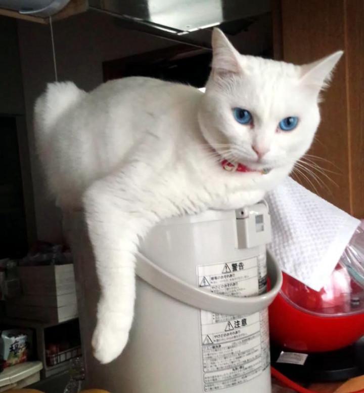 【朝の定位置・・ポットの上で寛いでおります・・】