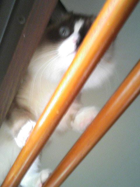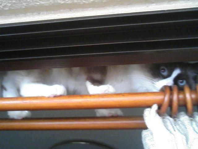 こんな風に僕はカーテンレールの上を遊んでるにゃん”