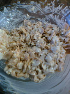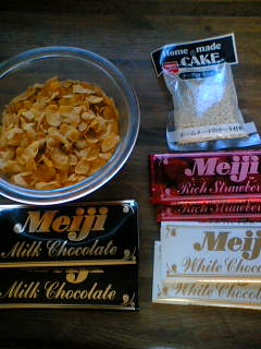 コーンフレーク、アーモンドダイスを入れて混ぜます。