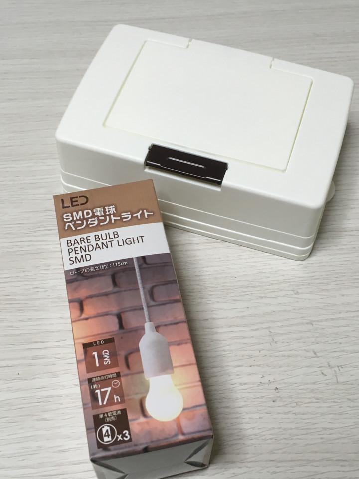 (左下のは乾電池式の電球、セリアのグッズです。非常時用に買ってみました。)