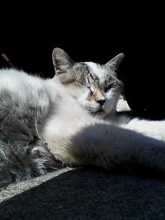 もう20年近く生きてるご長寿猫。若い頃はパンパンに太っていました。最近は日向で寝てばかりです。
