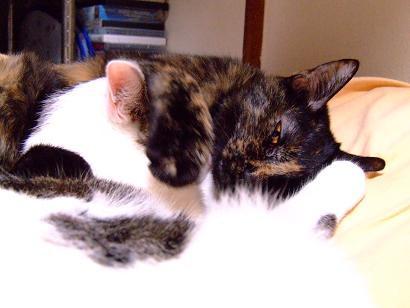 仲良しかと思ったら、おねーちゃんの毛づくろいじゃないのね……