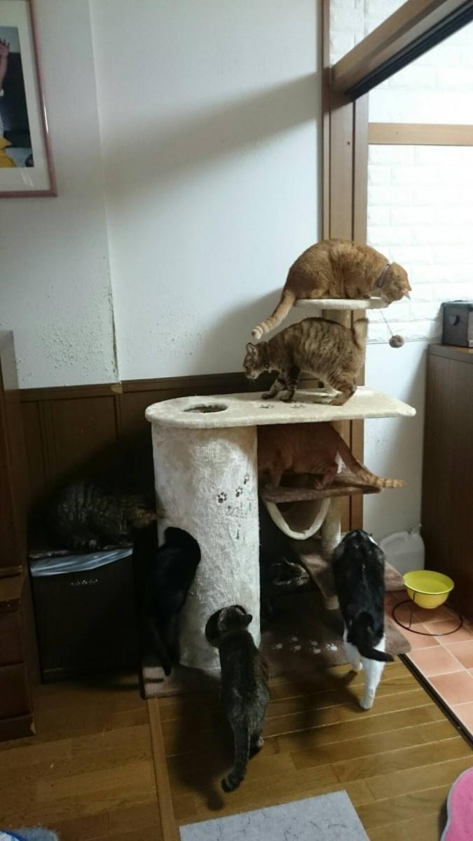 ふくちゃんが一度も乗らなかったてっぺんに秒で登るにゃんこたち(笑)
