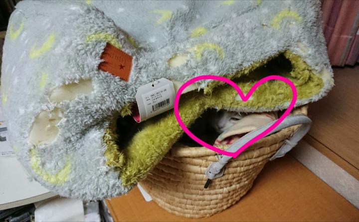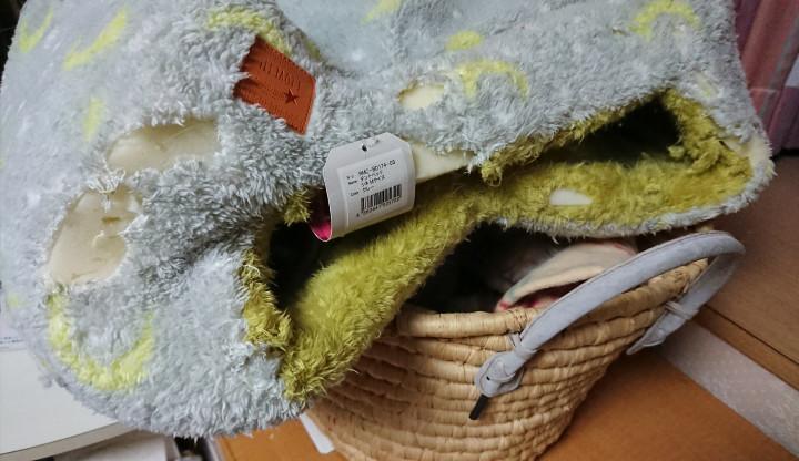 カブッチー、ウンチからオレンジ色のベッドのリボン