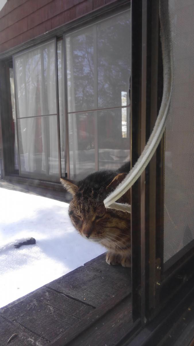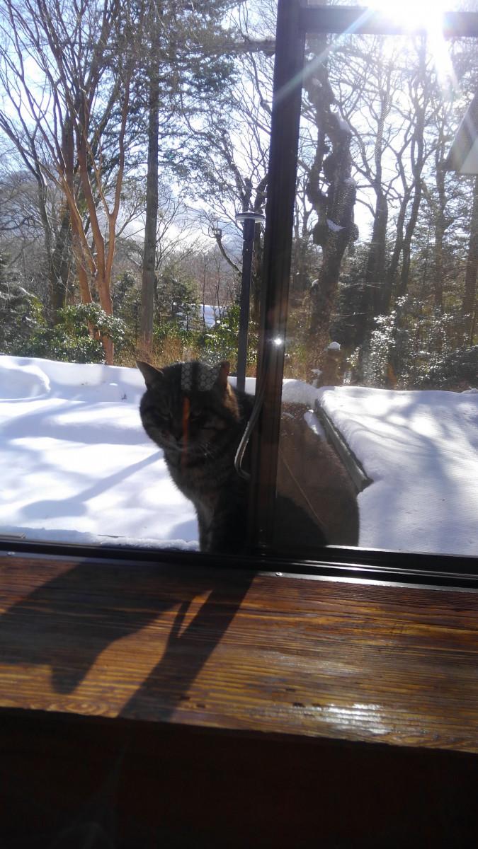 まだ、雪は溶けてなくて庭は真っ白ですが