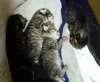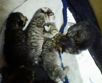 14歳のロシアンもどき巨猫フィ(♂)を筆頭に嫁の美猫カルネ、息子つばき、ぼたん。迷子のコギャル猫あやめも加わり大所帯・・・と思っていたら、あやめ(クロさん所の花のママ)がまた6プニー産んでまさに猫屋敷...