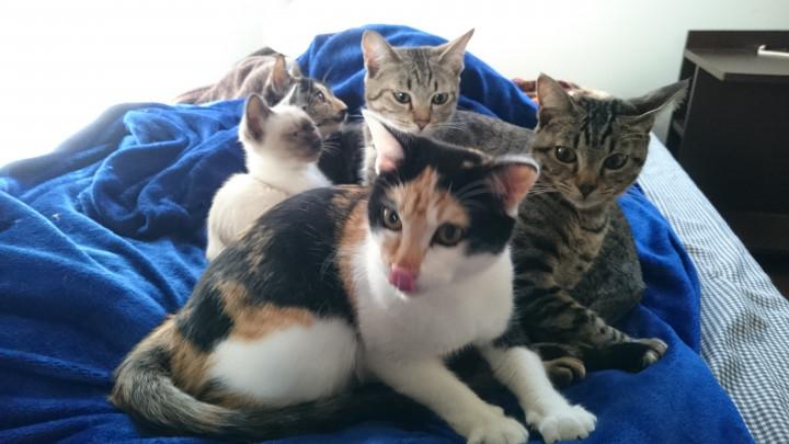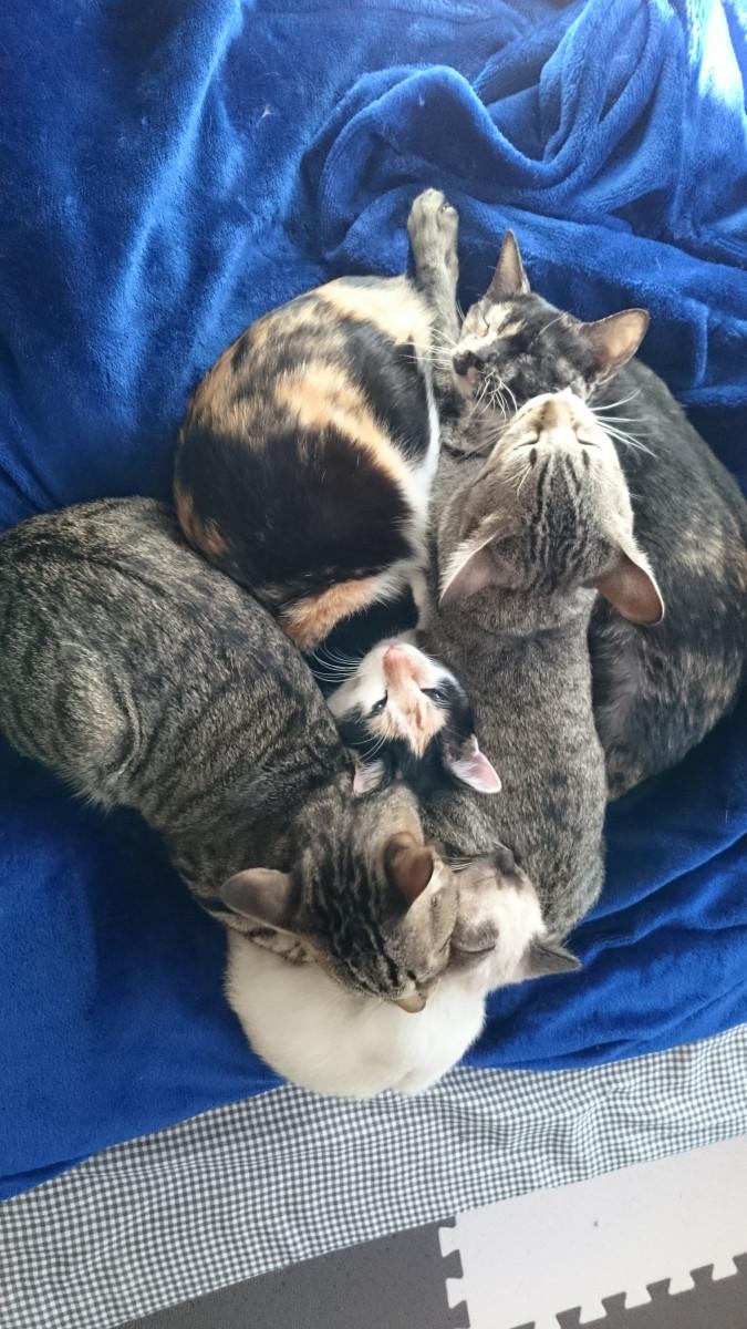 最初は去年ハチワレ猫を保護したことから猫を飼いはじめました。 このサイトでゎキジトラの姉妹をお譲りいただきました! あとは殺処分すると言ってた人がいてミケを引き取り哺乳瓶から育てて今はやんちゃすぎ...