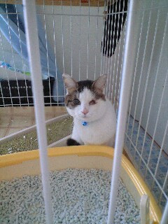 ごはんは、お仕置きとして、ゲージに入れてます!