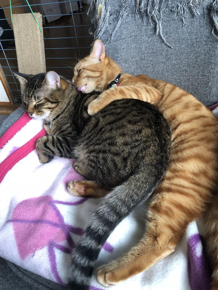 長男 カイン 2017年3月7日 茶虎 去勢済み ♂ マイクロチップ済み フード ヒルズk/d腎臓ケア 朝晩ラプロス 1日60g 次男 アベル 2017年4月22日 雉虎 去...