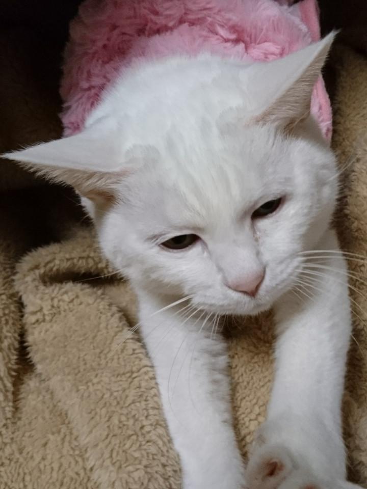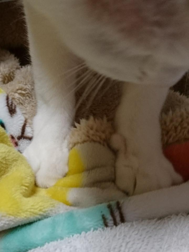 モモちゃんは、ホットカーペットでぬくぬくになった毛布に埋もれて寝ています。