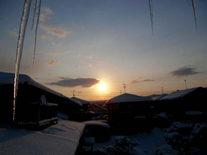【今朝の朝日です。ツララが長く伸びております。】