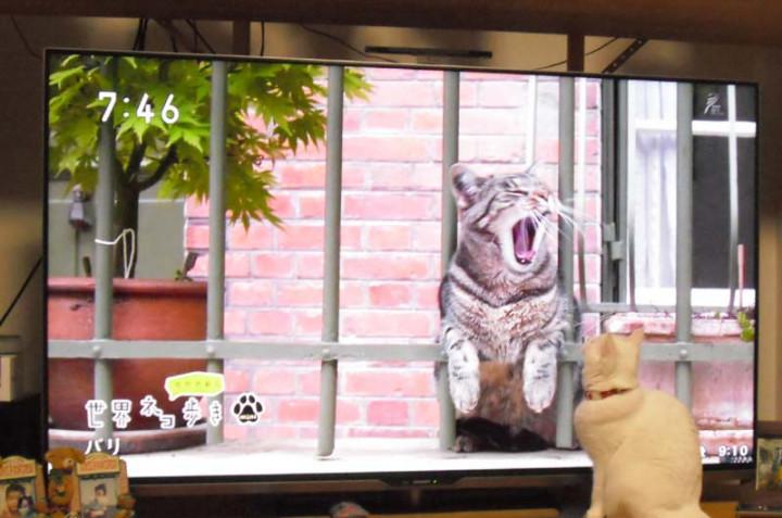 ネコ歩きを見るようになってから、私達がほかのTVを見てる時でも、TV前に陣取って「ニャンニャン♪」(ネコ歩き見るニャン♪)とリクエストしてくるようになりました。