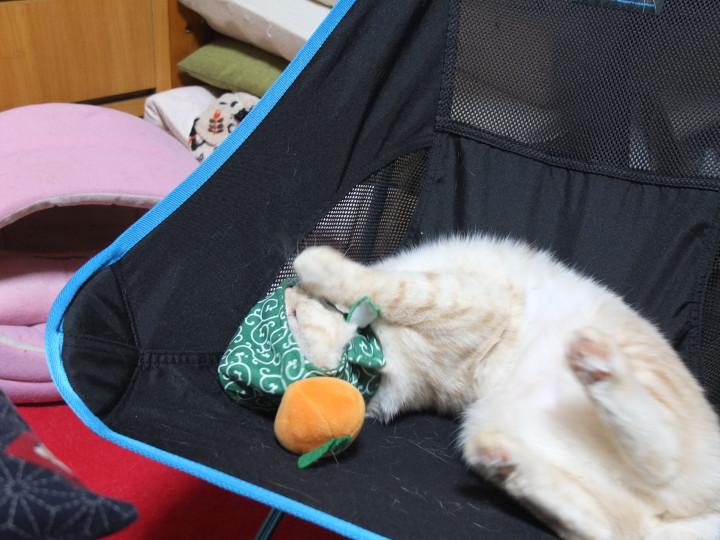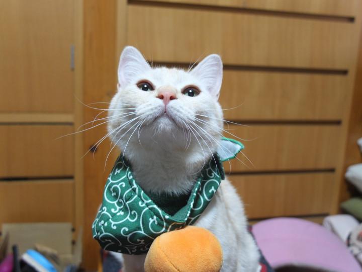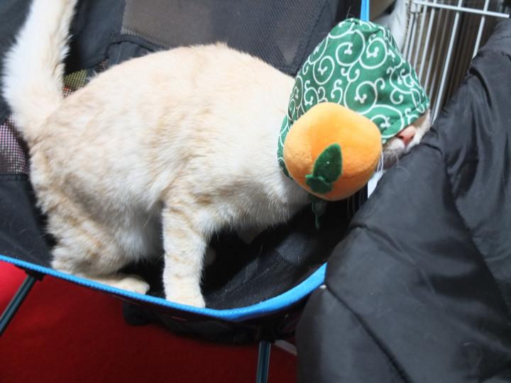 以前お友達に頂いたミカン泥棒をかぶって。