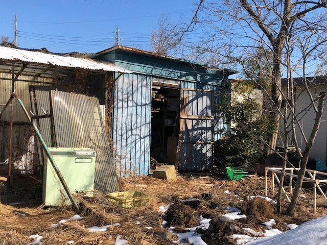 解体して庭をすっきりさせようと思っていた古~い物置。