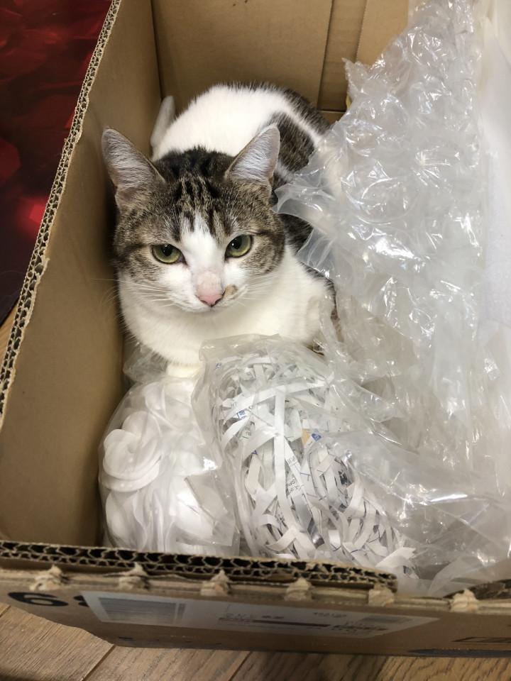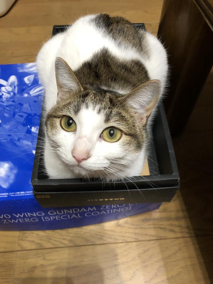 ゴマ子を追い出し、ダンボールに入ろうとする