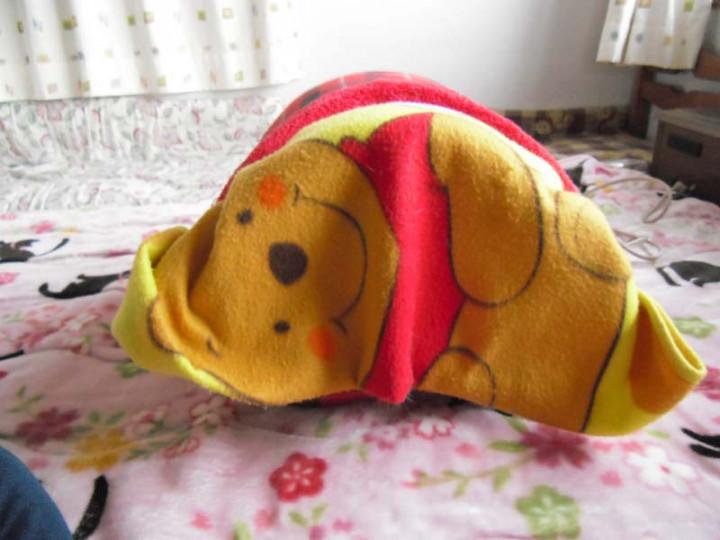 熊のプ~さんのブランケットが入口です。これで出入りは自由自在ですが、冷気は遮断しております。