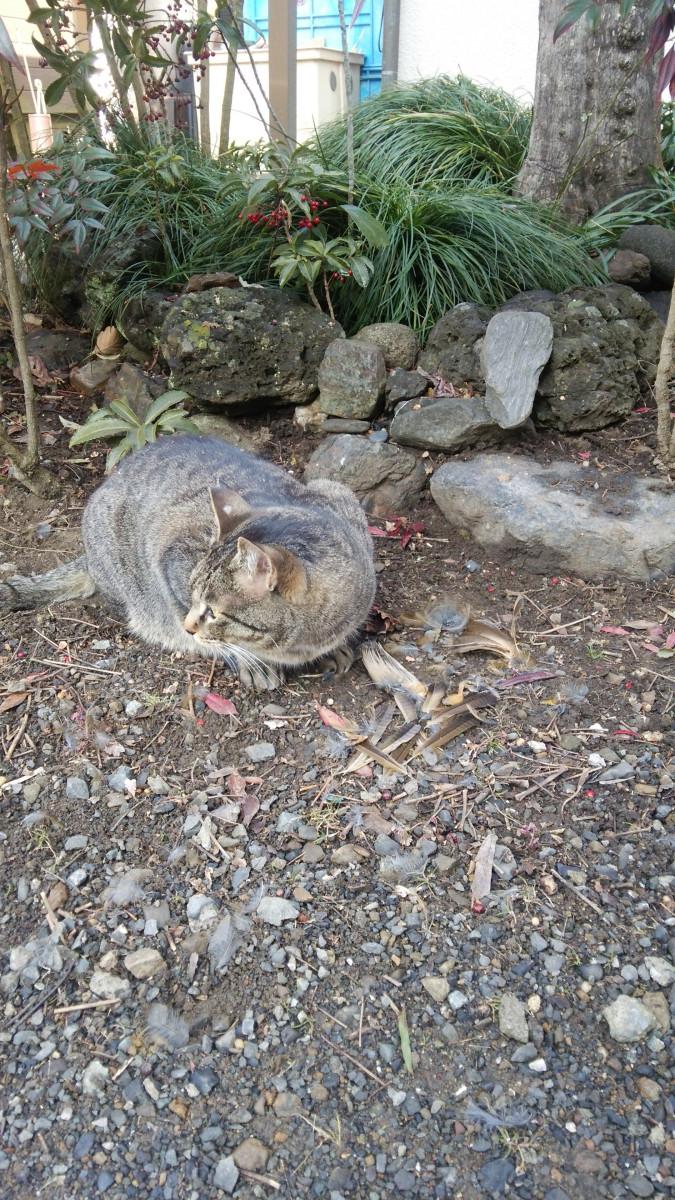 外猫の空ちゃんが外来種を狩り食べました。