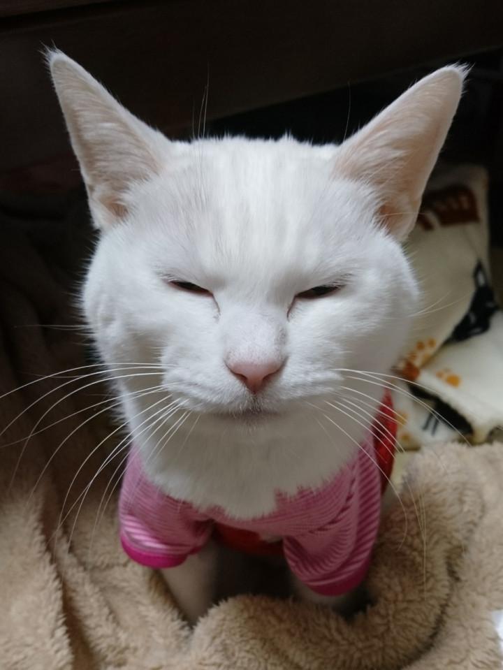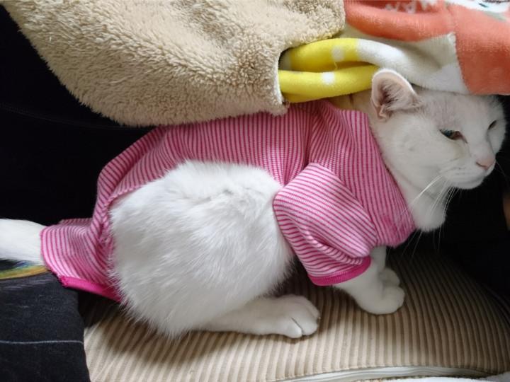 (↓モモちゃんの服は洗濯中で、しばらく術後服を着てました)