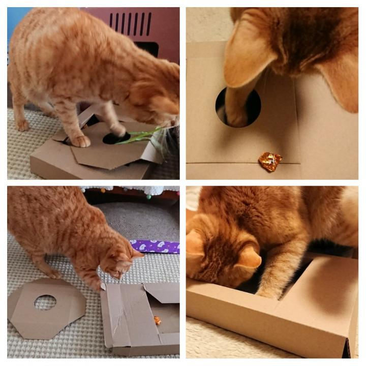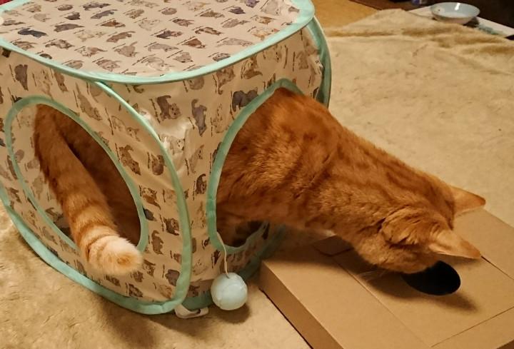じゃらしを入れたり、キラキラ包み紙を丸めたものを入れると大はしゃぎ。
