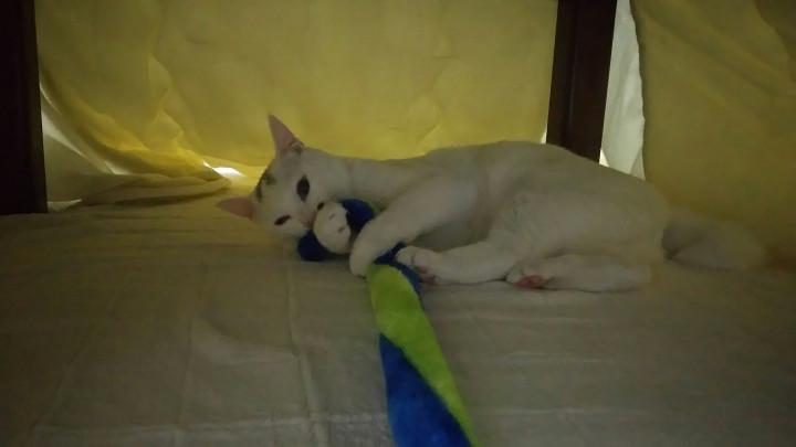 ちーちゃん、自分で取れるところであそんでね(=゚ω゚=)