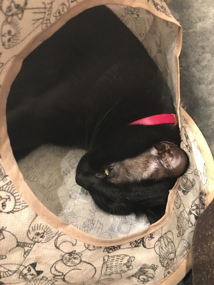 桃子 最近はカーペットの上にトンネルを置いておくと 暖かいようでお昼寝の場所になっています