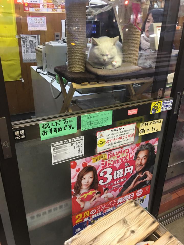 昨日、久しぶりに都内京葉交差点にある宝くじ売り場に伺いました。居ました、招き猫マコちゃんです。暖かい室内なのでしょうか睡眠中でしたが美猫ぶりが判る一枚となりました。取材も数多だとか。