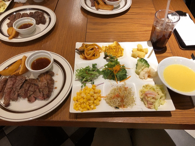お肉をメインにサラダやパスタやスイーツまで。