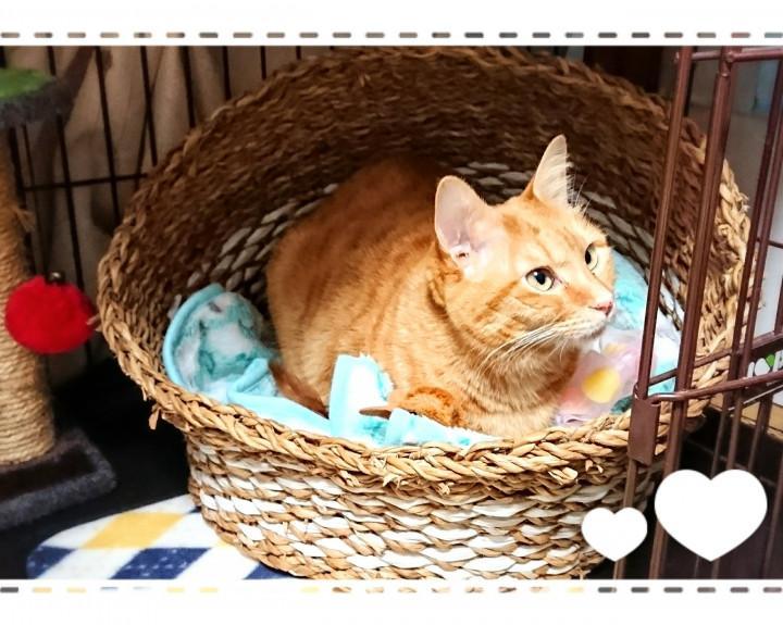 夏用のアジアンカゴベッドと入れ替えて、そのままでは寒そうだから、ブランケットを敷きました。