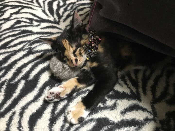 お気に入りのおもちゃを枕にして、今日もコタツに入って朝寝タイム❤️