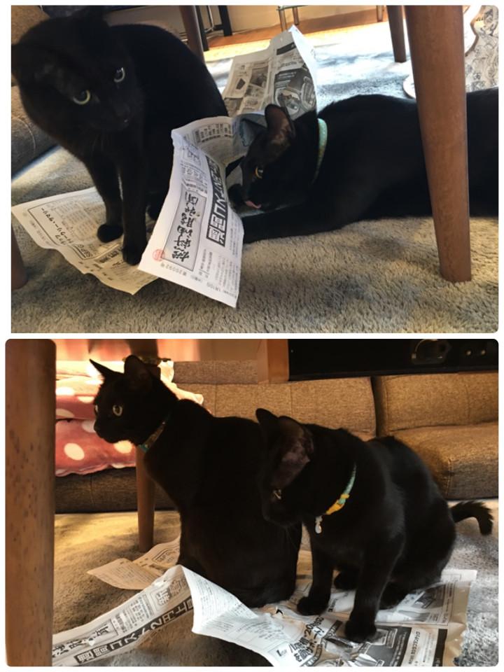 そして…最近毎朝の日課 新聞グシャグシャ遊び😸