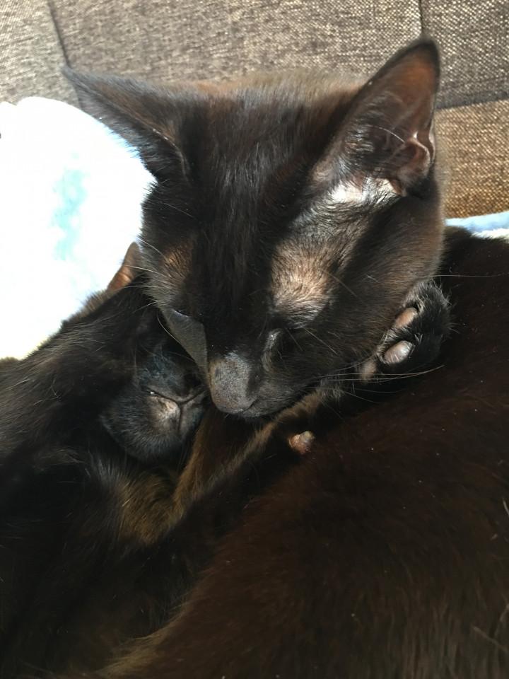 遊び疲れるとカン太はお兄ちゃんとお昼寝😺