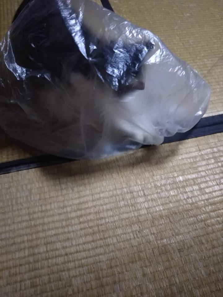 ビニール袋を置いてみたら、気に入ったのか袋の猫になってました。