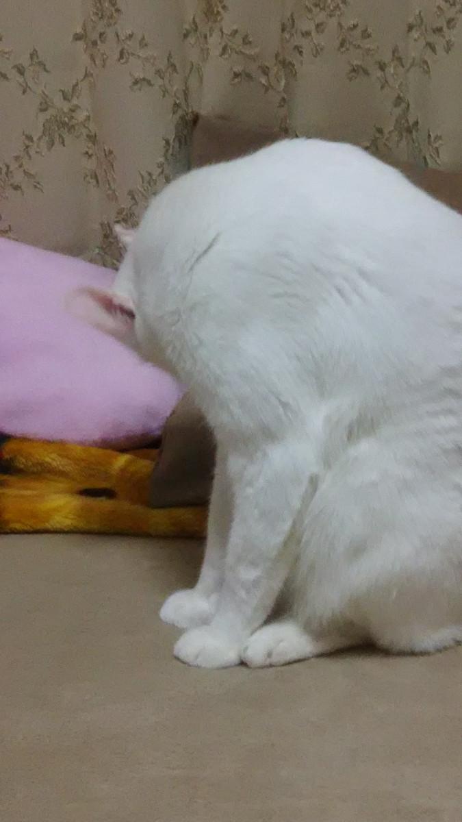 すごいビックリしたのか、すぐテーブルのイスのとこに隠れてた笑