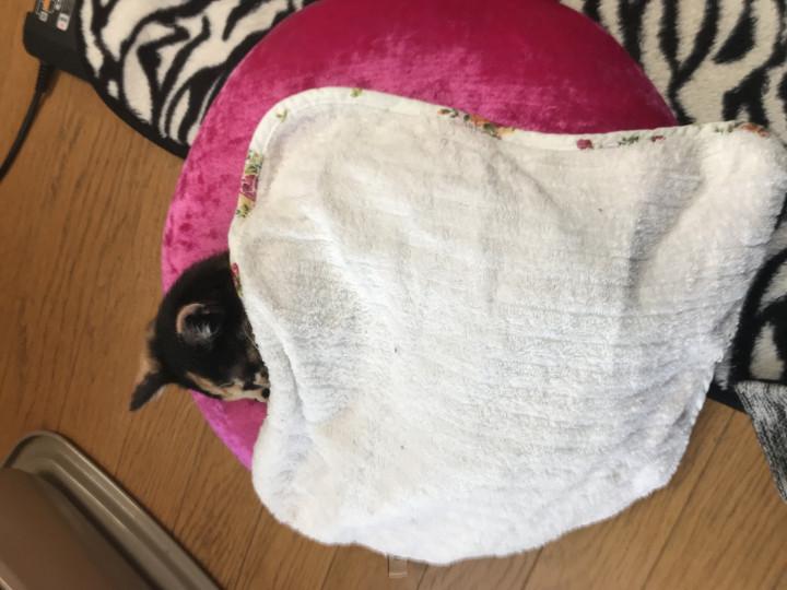 お姉ちゃんがタオルをかけるイタズラしました💦