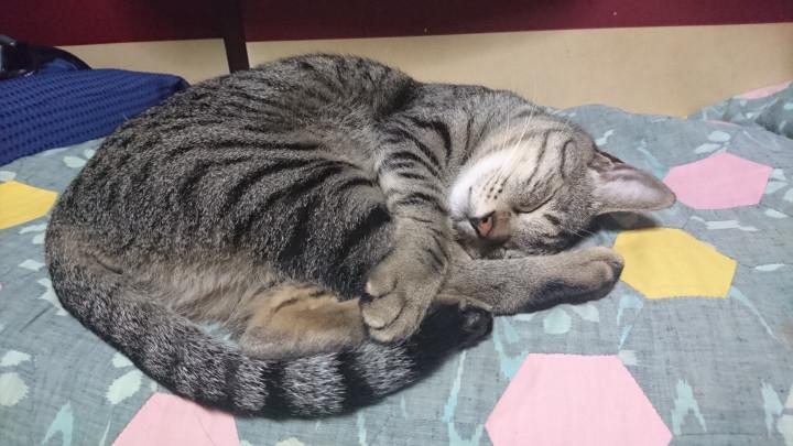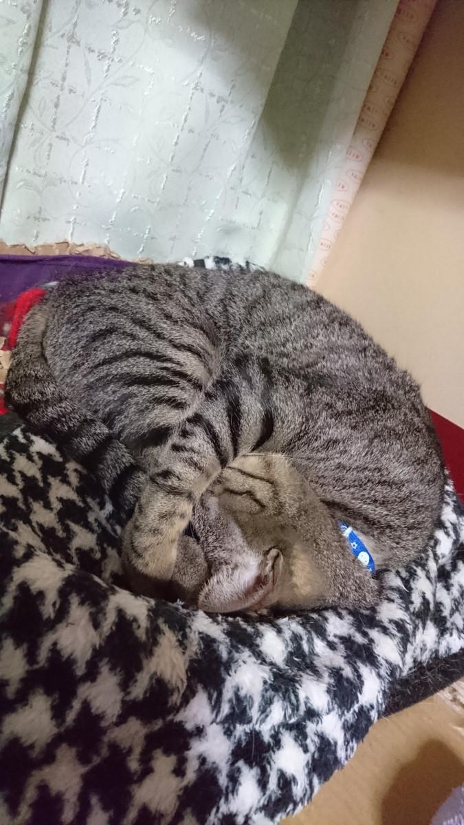朝、布団に来たから、毛布掛けてあげたらグッスリ寝てて、寝顔が可愛くて癒やされたぁ💕