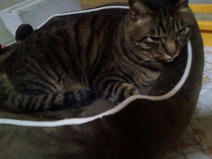 徹夜の間は怒りが収まらず、付き添いの猫に慰められ朝の勤務を迎えました。