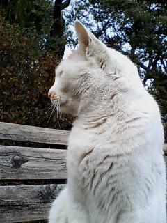 鼻の横にちょこっと茶色がついてるんだね。君もこっちを向いて写させてくれないんだ~。まだ解かり合えてないんだ。どうせご飯持ってないし。