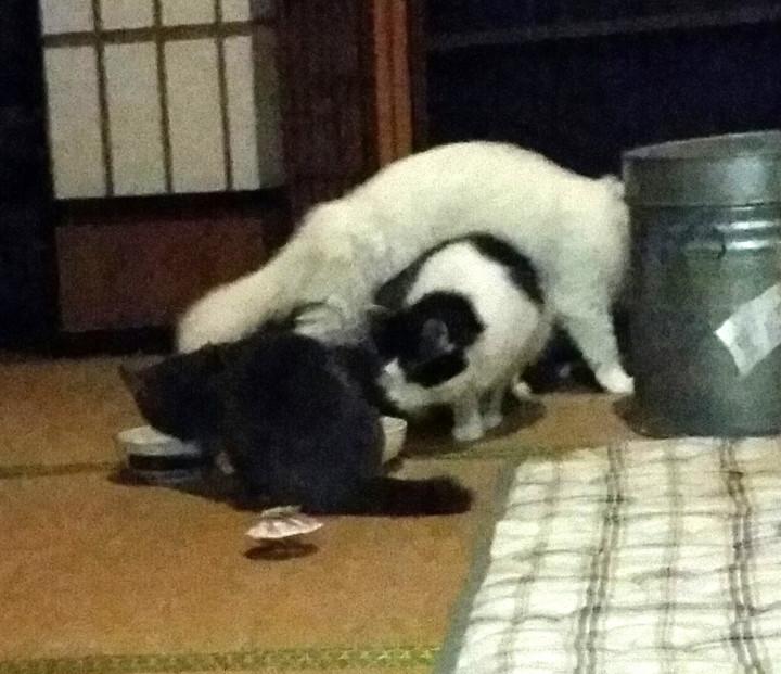 もんさんが、二匹が残した餌を食べに行ってもどちらもああいった行動はとらないのです。