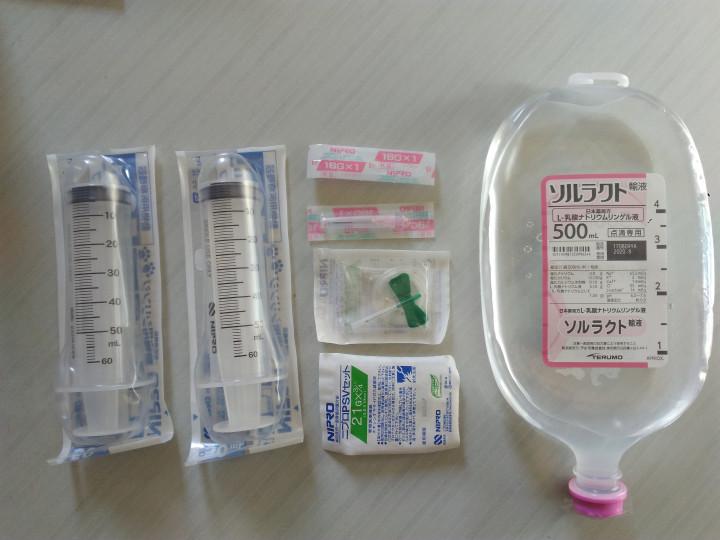 ・点滴セット(シリンジ+針+比翼針は、2セット分)