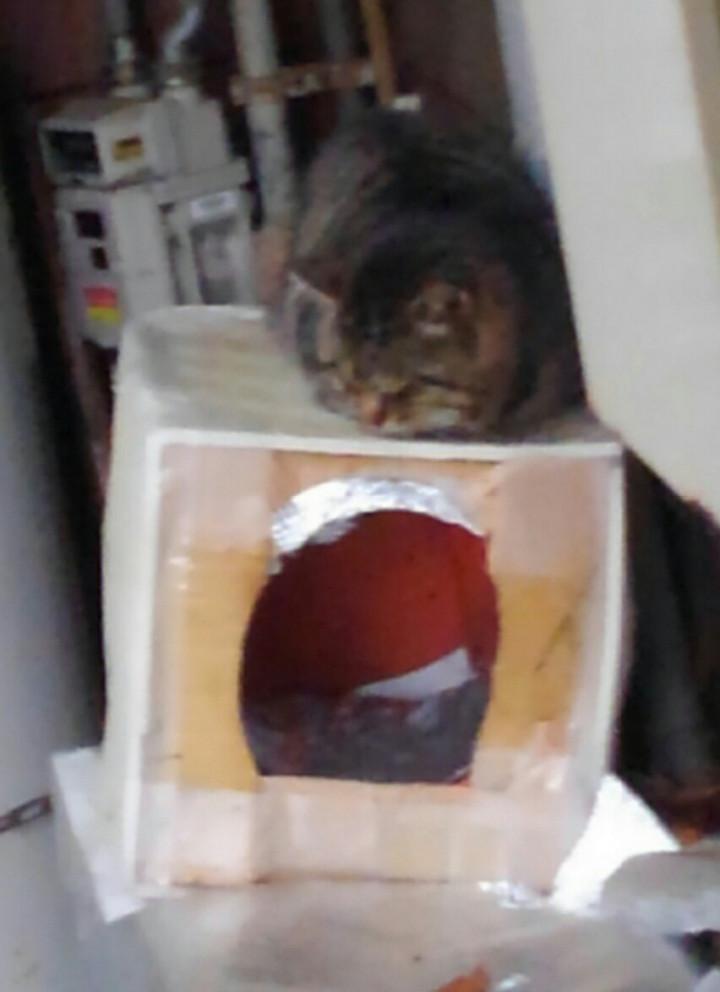 猫ハウスの上