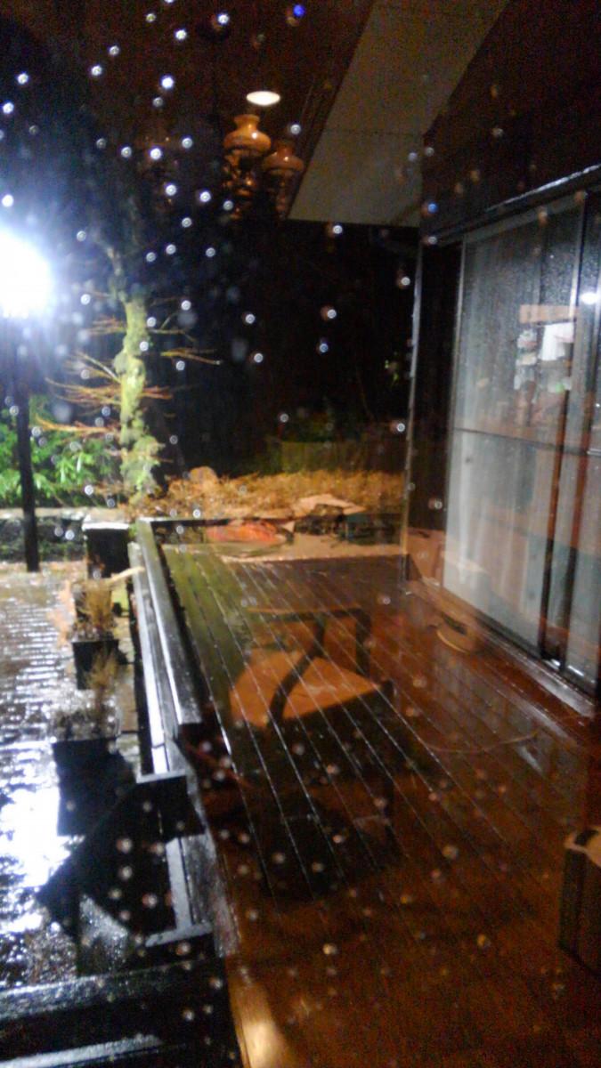 ウッドデッキを走って逃げる